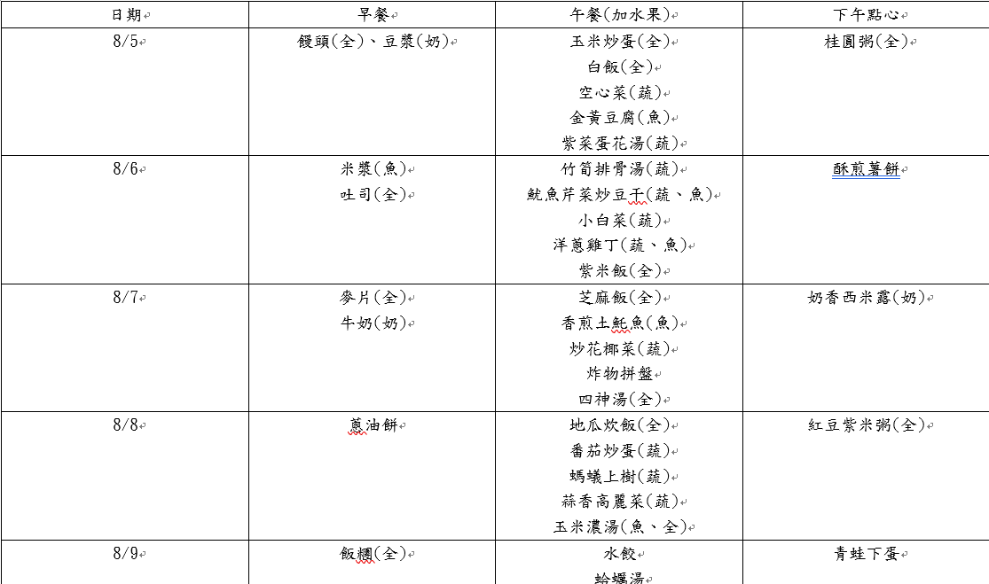 餐點表